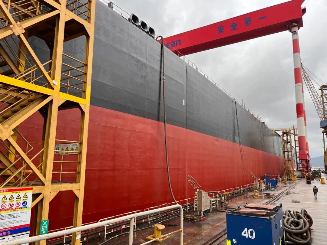 日前,魚童漆助力的30萬載重噸超大型油船(VLCC),在太平洋海洋工程有限公司的巨型船塢內(nèi)完成塢修保養(yǎng)。經(jīng)過魚童漆“全副武裝”后,身披靚麗防護衣的超大型油船雄姿英發(fā),豪邁地朝著下一個航程奮力前進。