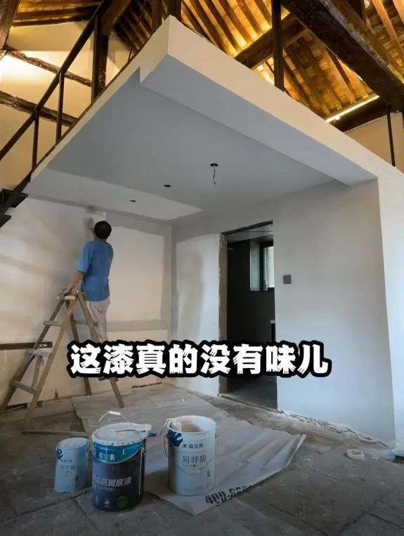 做好底層防護之后,就到涂刷面漆。用嘉寶莉易呼吸墻面漆的煙灰白刷新整個空間,不僅增亮了很多,讓房間瞬間大了一倍 ,最主要是產品沒什么味道,這個真的是出乎意料。