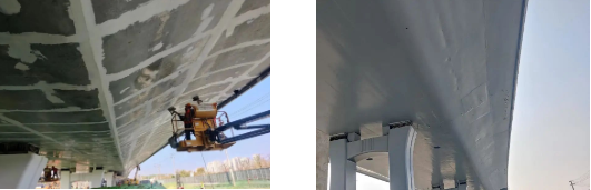 項目涂裝施工面臨重重難題:工期緊、任務重;冬季陰冷,濕度高、風速大,不利于施工;大型項目大多采用交叉施工作業,需要在其他施工帶來污染和破壞的情況下,確保涂裝效果。為了攻克這些難題,確保項目按計劃通車,亞士銷售協同技術團隊對項目進行了多次多處實地勘察,并與客戶進行了深入細致的溝通,最終精準制定了亞士水性環氧—氟碳超耐侯防腐體系涂裝系統解決方案。