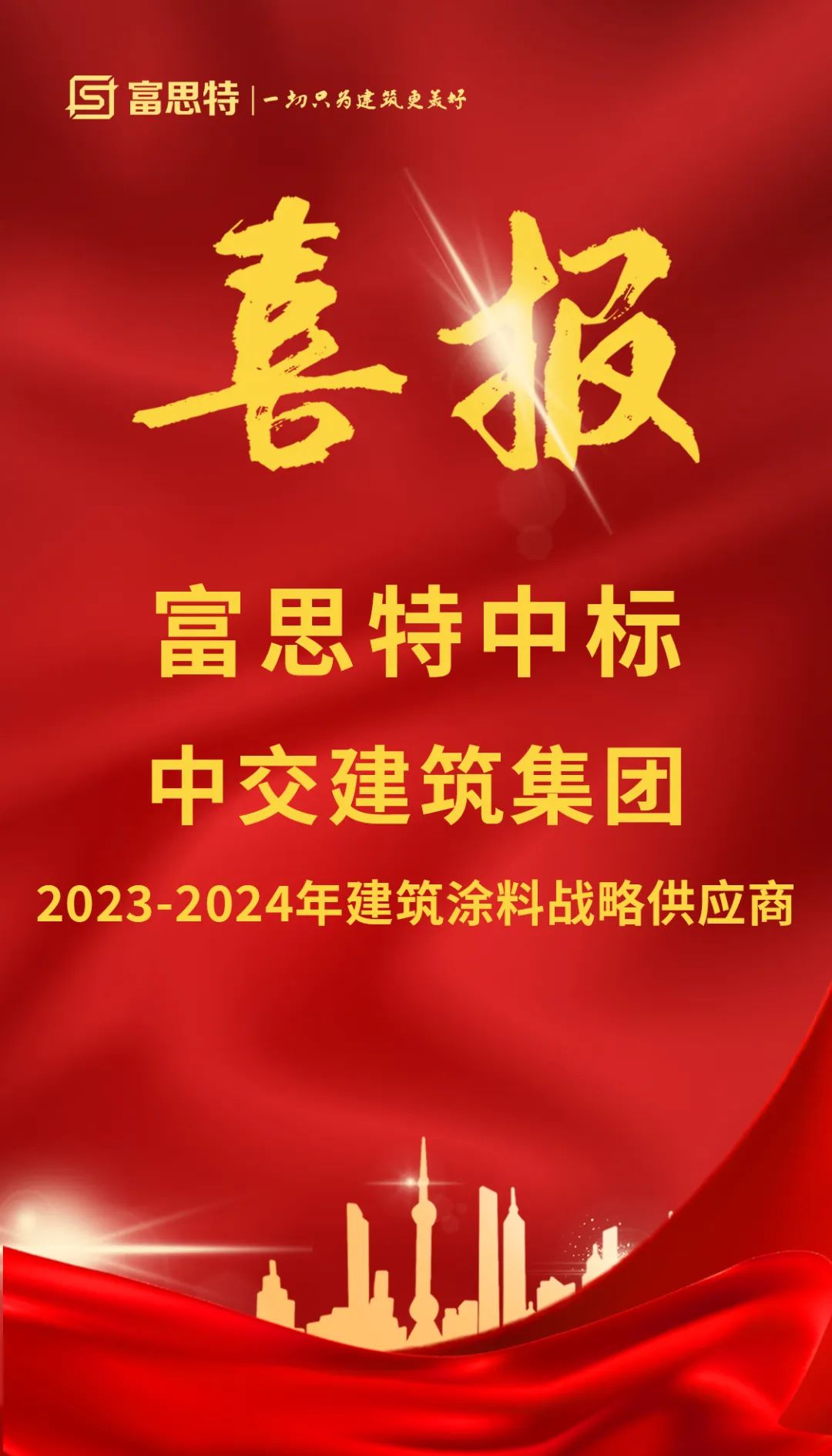 新年伊始,富思特再傳捷報!富思特成功被確定為中交建筑集團有限公司2023-2024年度建筑涂料戰(zhàn)略供應商。