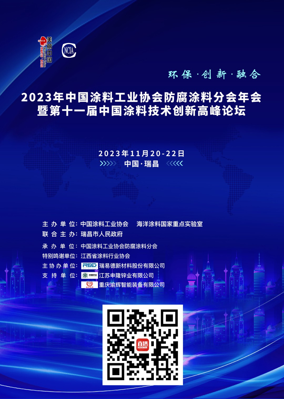 11月20-22日,由中國涂料工業協會、海洋涂料國家重點實驗室聯合瑞昌市人民政府主辦的“2023年中國涂料工業協會防腐涂料分會年會暨第十一屆中國涂料技術創新高峰論壇”,在素有“文化之邦”、“江南明珠”、“青銅故里”之稱的瑞昌隆重舉行。