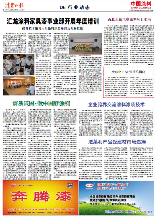 中國涂料報 2014年8月14日 星期四