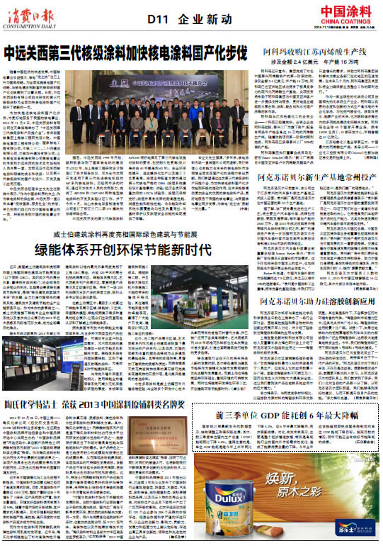 中國(guó)涂料報(bào) 2014年10月23日 星期四