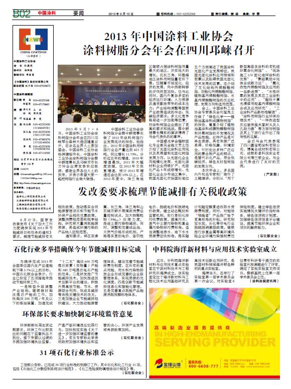 中國涂料報 2013年9月10日星期二