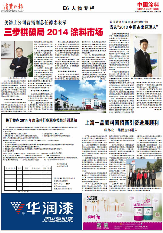 美涂士公司營銷副總任德忠表示三步棋破局2014涂料市場